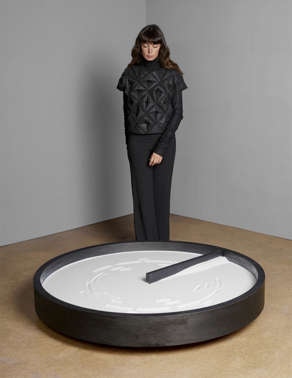 Nuffar لسيبا صحابي (Siba Sahabi)، آلة تصدر أصوات وصور، التصوير الفوتوغرافي: عائشة زايبفيلد (Aisha Zeijpveld) تحتوي "آلة الزخرفة" الحركية على طبقة من الرمال. ويدور مؤشر، على غرار ساعة الحائط، بشكل مستمر وتخدش مفاتيحه المدمجة أخاديد في الرمال. يتصور العمل الفني تركيبة موسيقية مصاحبة.